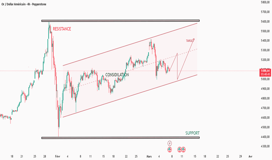 Dans un contexte de tensions géopolitiques persistantes, les flux vers les valeurs refuges continuent de soutenir structurellement l'or. Si le cours se maintient au-dessus de 5 100, une poursuite de la hausse vers 5 200-5 280 est fort probable, et un retour en force de l'offre pourrait ouvrir la voie à de nouveaux sommets.