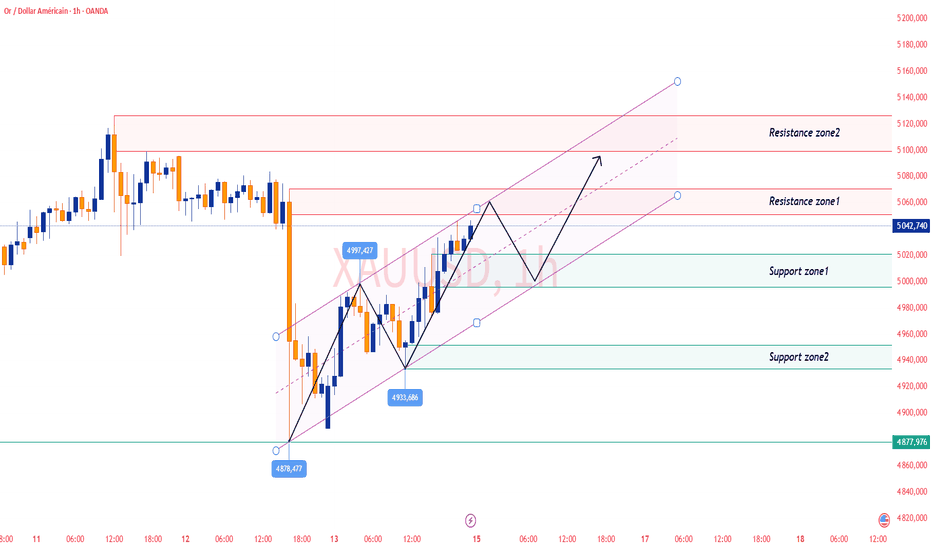 L’or évolue actuellement dans une tendance dominée par les acheteurs. Si le prix parvient à franchir la zone de résistance des 5050, une poursuite de la hausse vers 5070 et au-delà est probable. Il est donc recommandé de surveiller attentivement la cassure des 5050 et de suivre la dynamique haussière après confirmation. En cas de repli vers la zone de support 5000–5020, des positions longues peuvent être envisagées. Toutefois, si le prix casse nettement sous 5000, il conviendra de faire preuve de prudence et d’attendre un repli plus profond avant de réévaluer la stratégie.