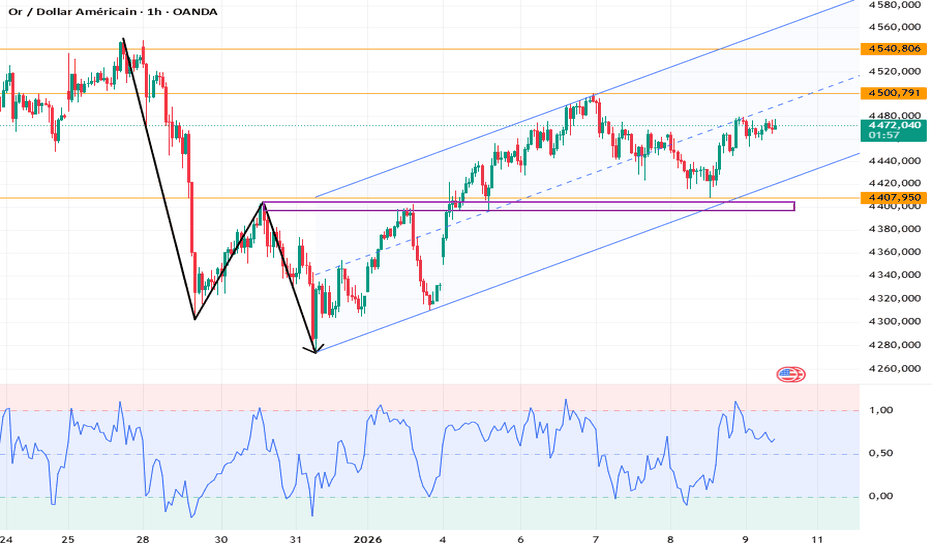 Le scénario haussier reste valide tant que le prix se maintient au-dessus de la zone de support 4 440 – 4 450 💪