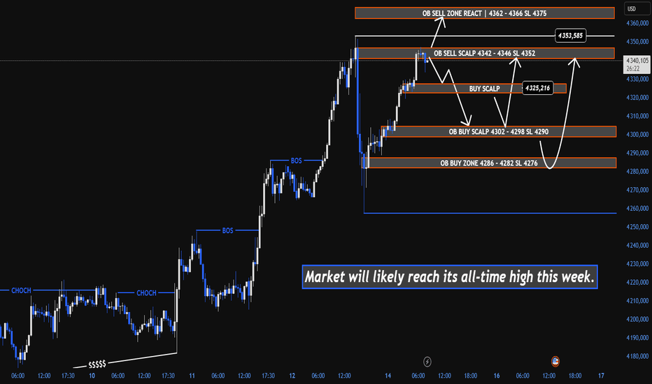 Cette semaine, les investisseurs surveilleront de près l’IPC américain (CPI), les ventes au détail et plusieurs discours de la Fed – tous susceptibles de provoquer une forte volatilité sur XAUUSD. Les balayages de liquidité dans les deux sens sont probables avant un mouvement directionnel clair.