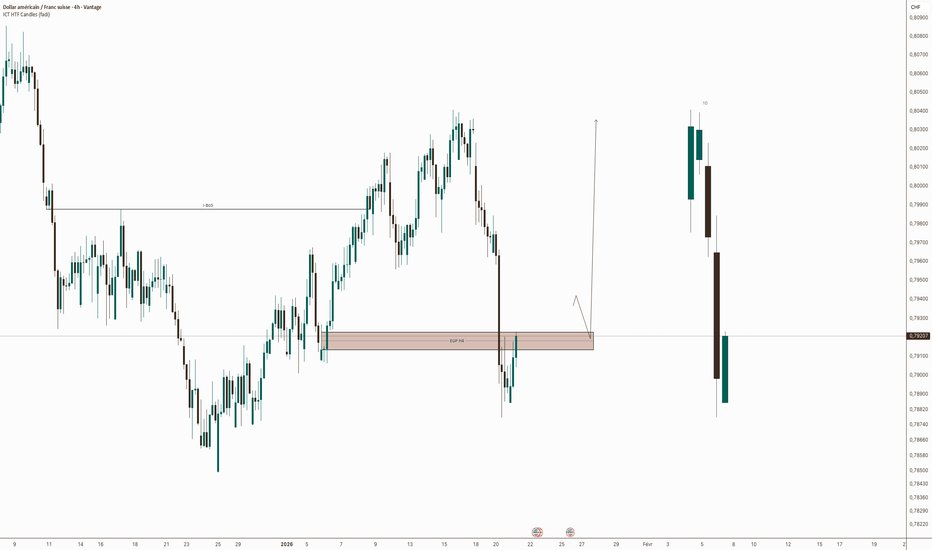 USDCHF M30 - LOGIQUE DU TRADE & CONCEPT D'EXTENDED GOLDEN POCKETCe trade repose sur l'exploitation d'un retracement de haute précision au sein d'une tendance établie. Après une impulsion haussière franche, la stratégie consiste à ne pas "chasser le prix", mais à attendre son retour dans une zone de décote institutionnelle. Le concept de l'Extended Golden Pocket (EGP), situé entre les niveaux 61.8% et 66.8% de Fibonacci, représente le point d'équilibre optimal où le ratio risque/récompense est le plus élevé. C'est dans cette zone que les algorithmes et les grandes mains cherchent généralement à se repositionner, offrant ainsi une probabilité de rebond supérieure à la moyenne.