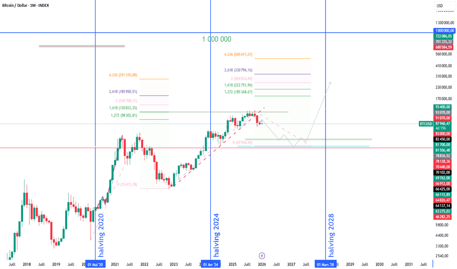 D’un point de vue Elliott Wave, la structure actuelle correspond à une phase de transition vers le démarrage de la wave 3, historiquement la vague la plus directionnelle et explosive du cycle.