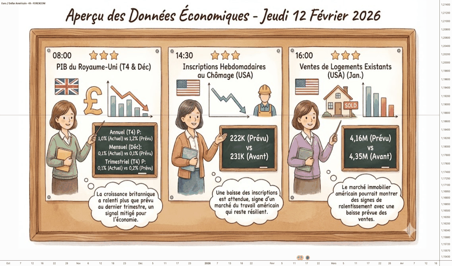 FLASH MACRO : JEUDI 12 FÉVRIER 2026Après une séance de mercredi marquée par les chiffres de l'emploi, nous restons sur un rythme soutenu aujourd'hui. C'est une journée de "vérité" pour l'économie britannique ce matin et un test de résilience pour le marché américain cet après-midi. Voici ce qu'il faut surveiller.
