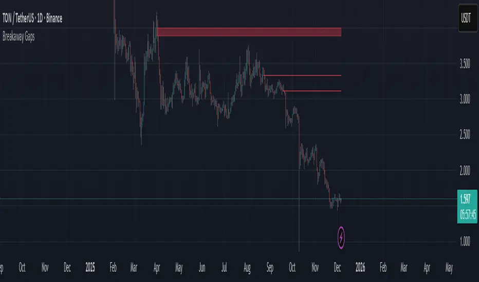 Breakaway Gaps is a gap-mapping tool designed to highlight areas where price has displaced rapidly and left potential imbalance zones on the chart. It blends multiple detection techniques into one framework, allowing traders to monitor different styles of “breakaway” behavior without clutter or manual drawing.