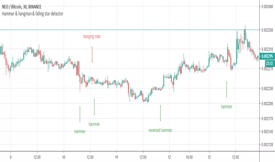 Simple script to detect and mark possible reversal candlesticks - "hammer" and reversed version "hanging man".
