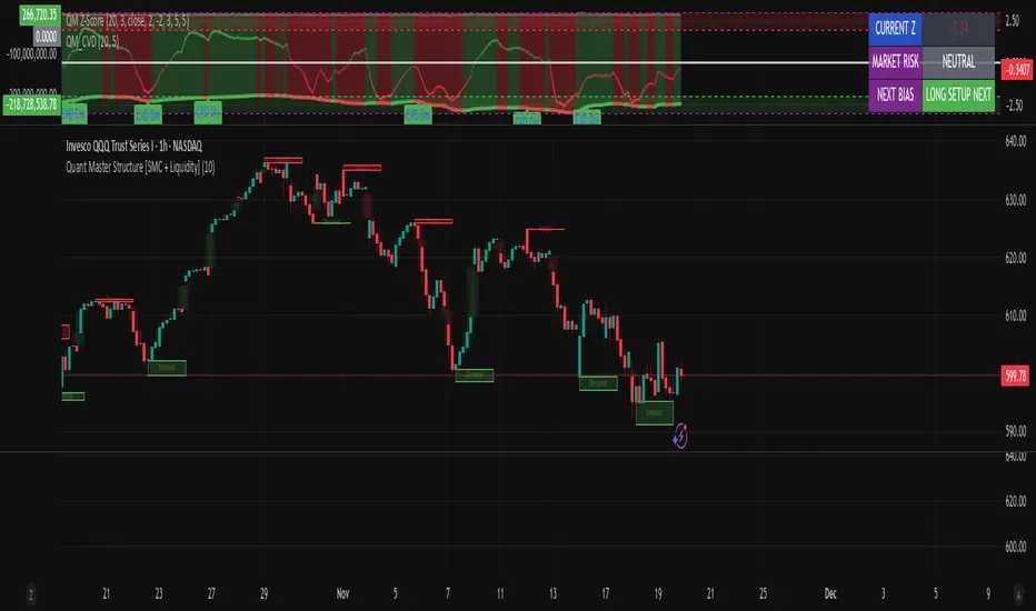 The Quant Master Flow indicator is a tool that analyzes market aggression by tracking the Cumulative Volume Delta (CVD), providing critical insight into institutional participation and short-term liquidity absorption. It acts as the "Conviction Filter" to confirm the statistical signals provided by the Z-Oscillator.