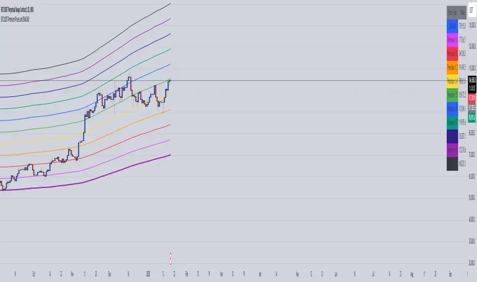 Overview: This indicator is designed for traders and analysts who want to visualize the long-term trend of Bitcoin (BTC) against Tether (USDT) while also identifying premium price levels based on the Exponential Moving Average (EMA) of the closing price over a 360-period timeframe. This indicator provides a comprehensive view of market dynamics, helping users make informed trading decisions.Key Features: