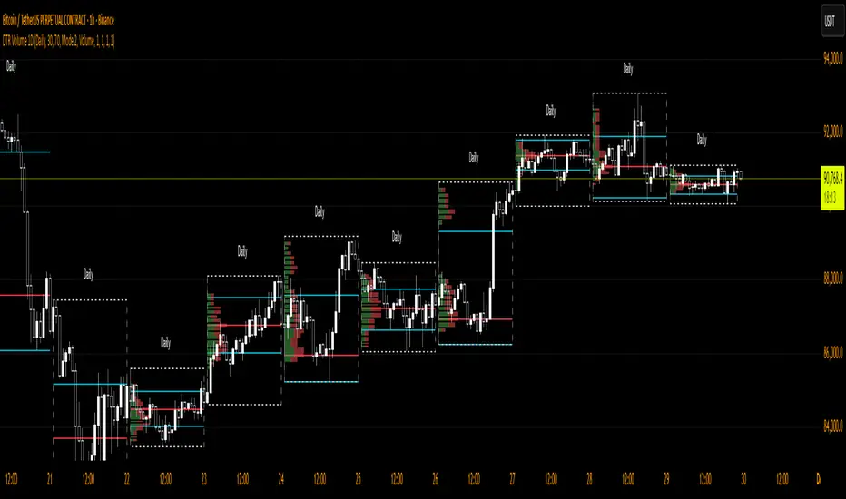 DTR Volume 1D is ideal for traders who want a clear, actionable view of volume distribution and session dynamics, helping you make better trading decisions with session-level insights.