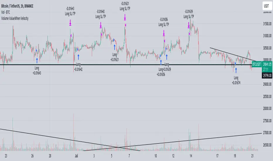 The "Volume ValueWhen Velocity" trading strategy is designed to identify long position opportunities based on a combination of volume conditions, RSI, and price action. The strategy aims to capitalize on potential bullish movements and utilizes a stop-loss and take-profit mechanism to manage risk and optimize potential returns. Traders can use this strategy as a starting point for their own trading systems or further customize it to suit their preferences and risk appetite. It is crucial to thoroughly back-test and validate any trading strategy before deploying it in live markets.