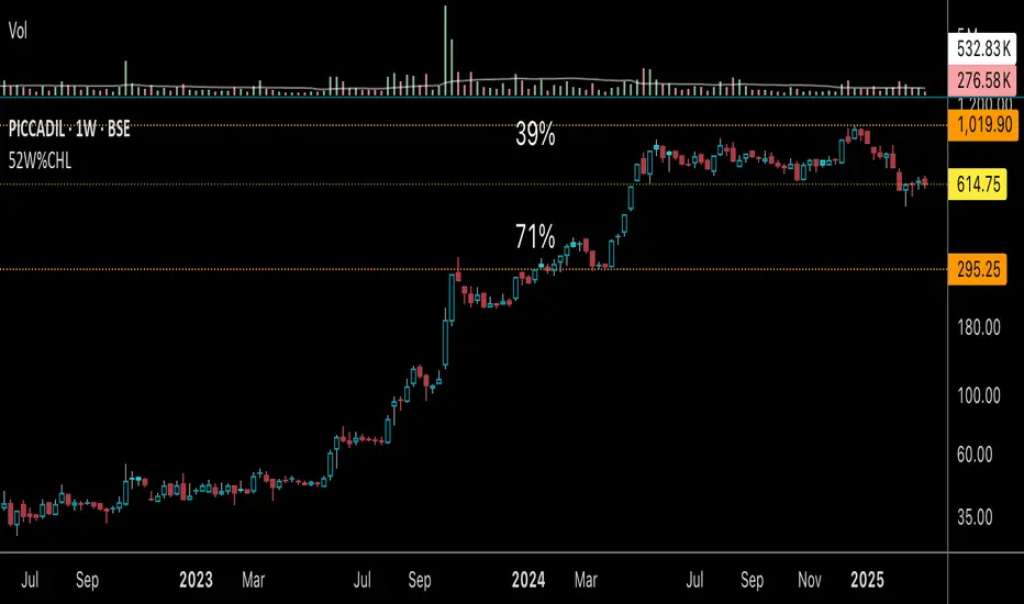 52 Week High/Low Indicator with percentage difference between High/Low & High/Current Price