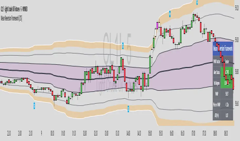 The current regime and ATR percentile are displayed on the dashboard and can be used as context for whether mean-reversion setups may be more or less favorable. Alerts can fire when volatility crosses into high or low regimes so users can adjust expectations or strategies if desired.
