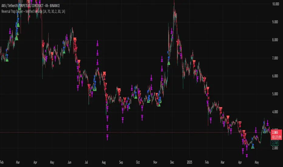 Reversal Trap Sniper is a counterintuitive momentum-following strategy that identifies "reversal traps"—situations where traders expect a market reversal based on RSI, but the price continues trending. By detecting these failed reversal signals, the strategy enters trades in the trend direction, often catching strong follow-through moves.