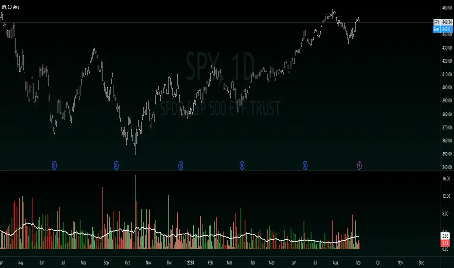 This simple indicator calculates the absolute size of the candle by the open and close or high and low values and then plots it on a histogram. It also features a simple moving average with a customizable lookback to track the average candle size based on your lookback.
