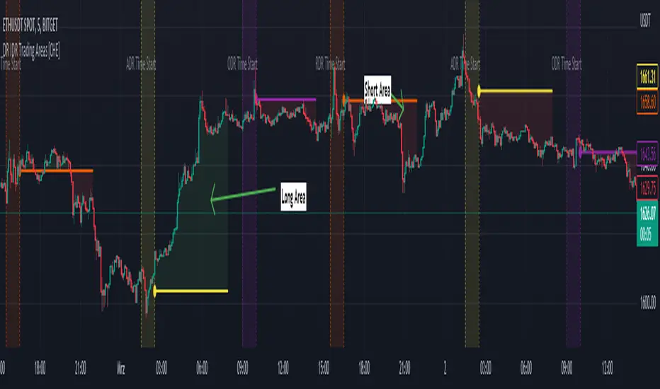 This Pine script is an indicator for trading areas that allows the user to define different trading periods for a symbol based on specific times. It plots three lines on the chart representing the average price movements during each of the defined trading periods, RDR (Regular Daytime), ADR (Afternoon Daytime), and ODR (Overnight Daytime). The script also shades the chart to highlight when the current price is above or below each of the three lines, and it draws dotted lines and labels to mark the start of each trading period. The indicator