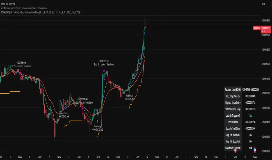 BONK/USD (1H) - $4k DCA + Dual Trailing + Date Filter