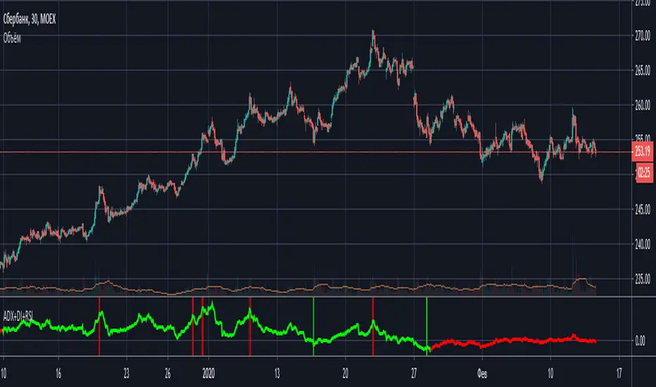 This is the standard ADX & DI indicator, but combined in a single line, changing color when a trend changes and changing value when the trend is strong.