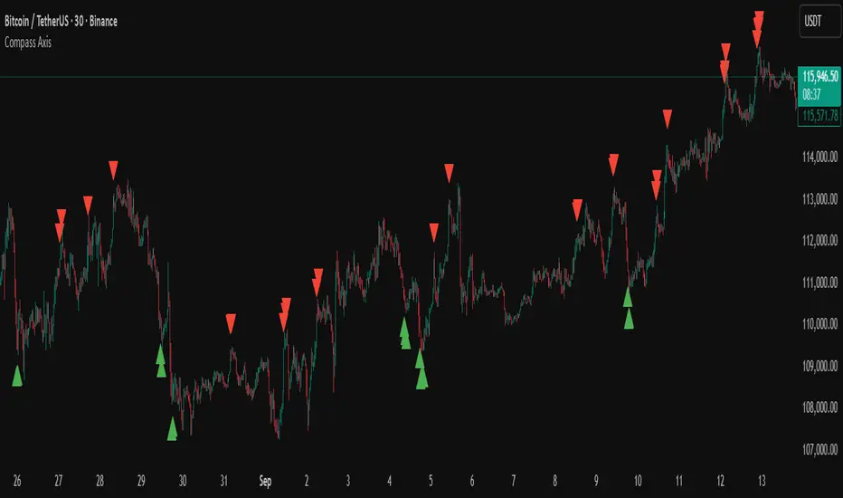 Compass Axis is a proprietary price-mapping indicator designed to detect market extremes with high precision.