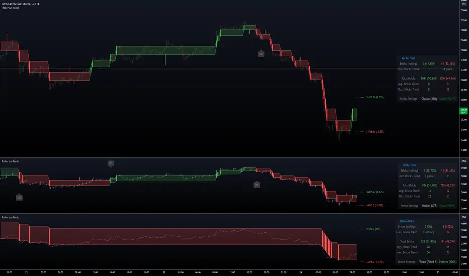 Note: if settings are Unreliable, the script will not show any Renko candles or levels. The Output can still be used on external indicators, if needed (e.g. for a more granular RSI output).