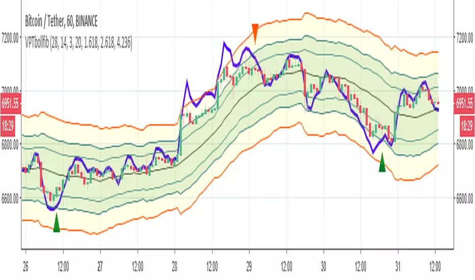 This indicator based on VPT (volume indicator that show buy and sell power) and Bollinger fibo lines..