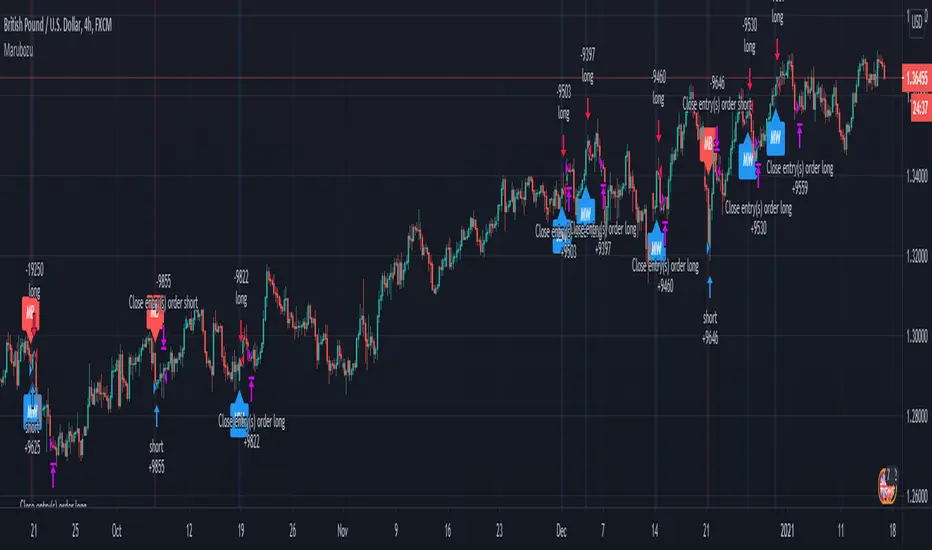Hi, today I bring you a price action strategy/indicator for Forex, made out for Marubozu candle type.