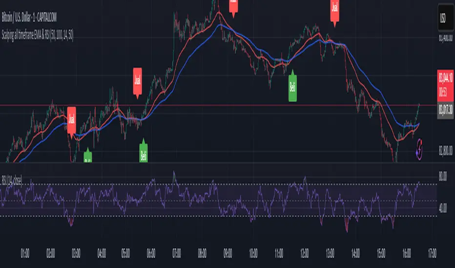 * Be prepared to take a Sell position if the first Bearish Candlestick crosses both EMAs, and the RSI value crosses below 50.