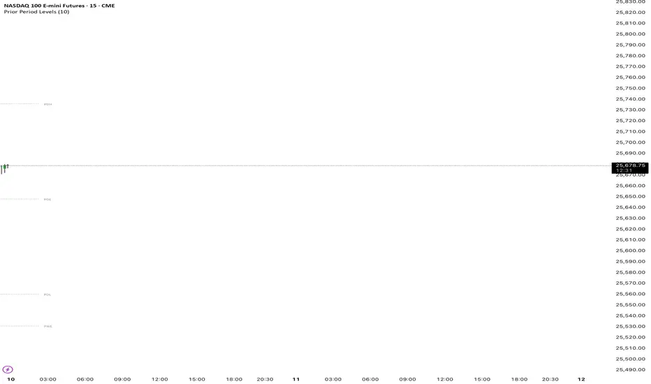Reference levels for institutional order flow concepts. Prior period highs/lows act as liquidity pools; equilibriums mark fair value zones where price often rebalances. Works on any instrument and timeframe.