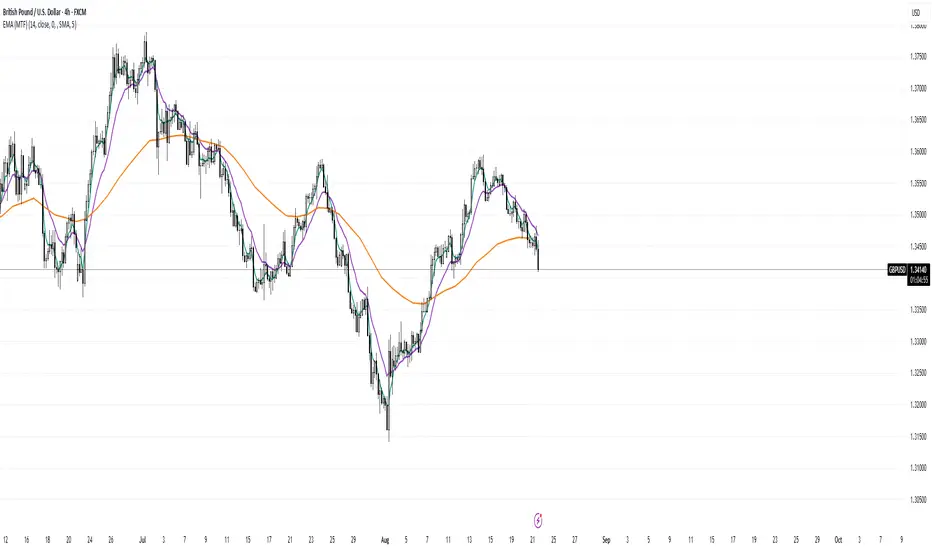 Clean Multi-TF Overlays: Visualize EMAs from up to three higher timeframes (1H, 4H, 1D) on any chart—each using native plots to stay anchored and accurate, just like built-in EMAs.