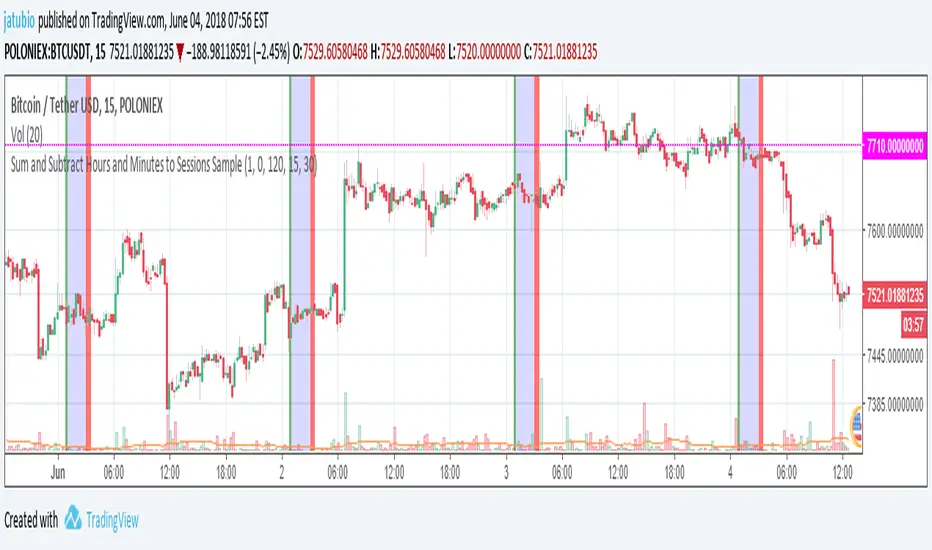 This indicators it's a programming sample of how to sum and subtract hours and minutes to sessions on Tradingview
