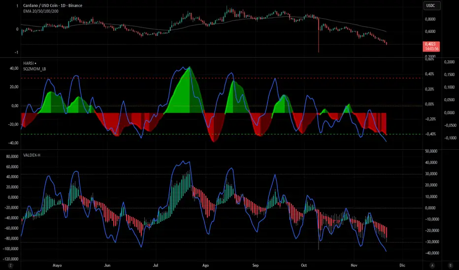The VALDEX-H is an advanced momentum oscillator designed to provide a cleaner and less noisy view of market momentum compared to a standard Relative Strength Index (RSI). It integrates Heikin-Ashi smoothing logic directly into the RSI calculation, effectively filtering market fluctuations and providing clearer trend visualization, optimized for Pine Script v6.