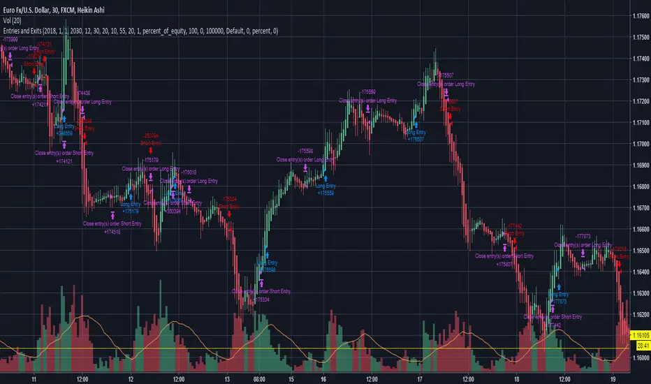 This is a simple price action breakout script that utilizes HEIKIN ASHI CANDLES for maximum trend profit. Failure to apply Heikin Ashi candles to your charts will negatively alter your back test results. This script is to be used for back testing and manual trading. It will NOT give you alerts. I have made a separate "Entries and Exits Alerts" indicator that will provide custom alerts based on your settings that is meant to be used in place of this script once you have dialed in your specific settings depending on your back test results. This script can be used to trade most any asset but I've had the best of luck with cryptocurrencies and FOREX. Message me for one day trial access to test and see if you like it.