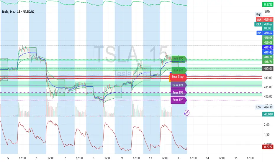 A customizable underlyingSymbol variable if you wish to adapt the script to another ticker. To use this indicator on future sessions, simply update the bullEntry, bearEntry and associated stop/target variables to reflect the current pre‑market range.