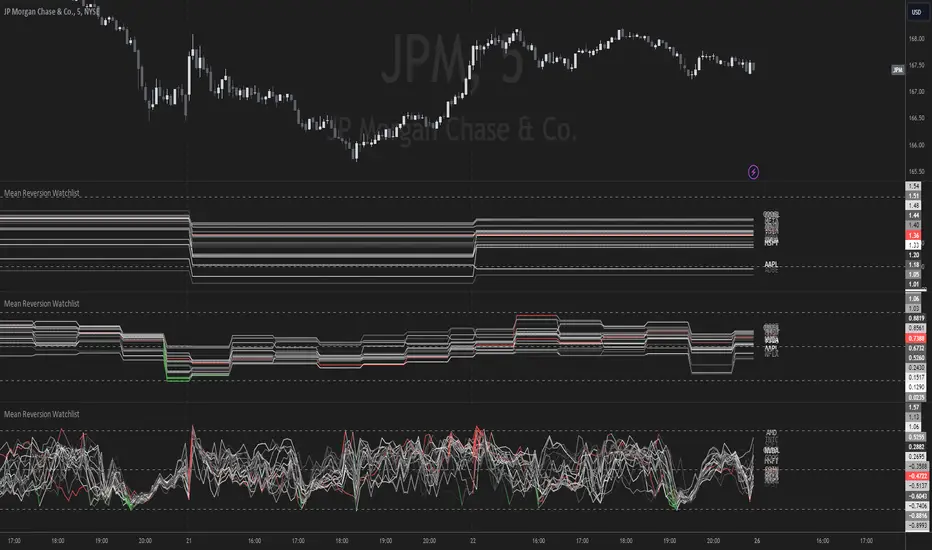This indicator plots the Z score for up to 20 different assets (Note the maximum is 40 however the utility of 40 plots in one indicator is not much, there is a diminishing marginal return of the number of plots).