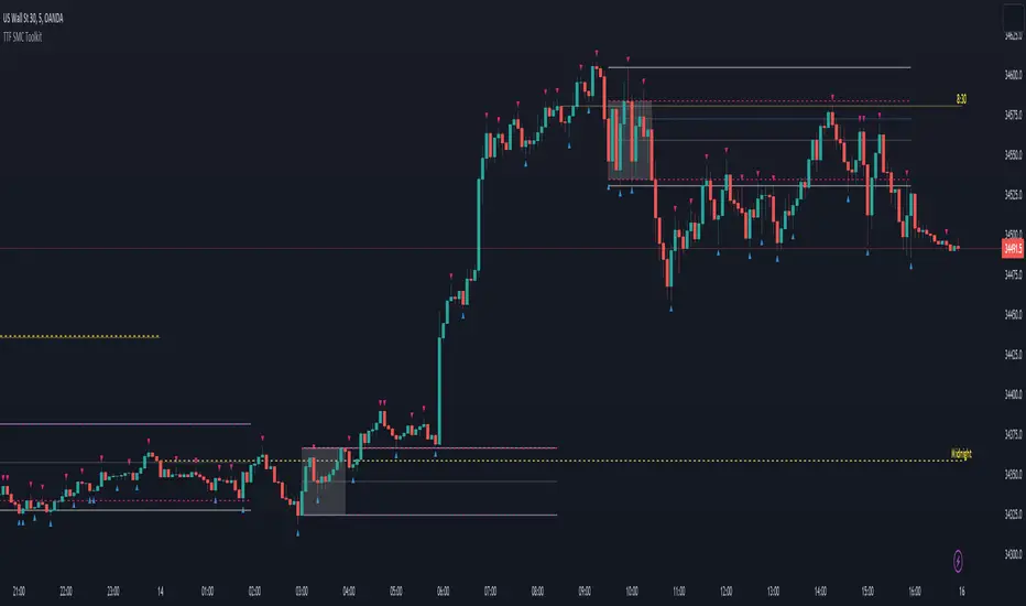 Greetings and welcome to another community indicator from TTF! This indicator is our attempt to build a suite of tools for use in Smart Money Concepts (SMC) and Price Action style trading strategies. If you aren't familiar with these models, we'd encourage you to do some independent research on them to find out how to properly use these models and the tools included in this indicator.