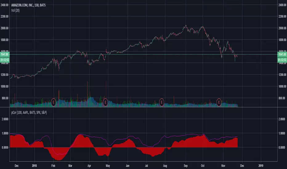 Computes the correlation between AAPL and AMZN while removing the influence of SPX.