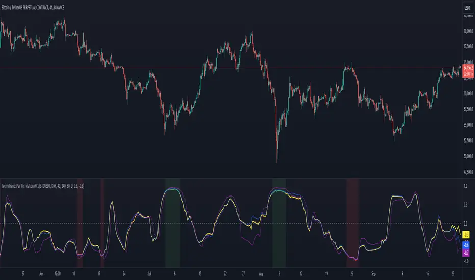 The TechniTrend: Dynamic Pair Correlation is a powerful and versatile indicator designed to track the correlation between two assets—whether cryptocurrencies, indices, or other financial instruments—across multiple timeframes. Understanding correlations can provide deep insights into market behavior, helping traders make informed decisions based on how two assets move in relation to each other.