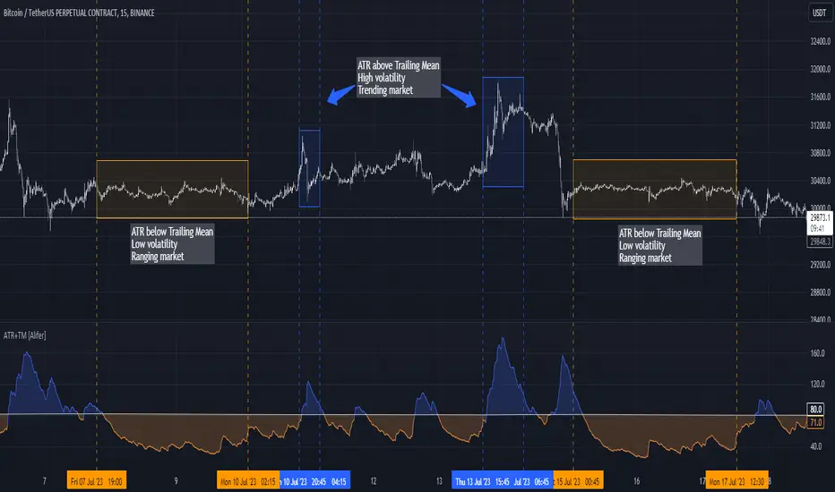- Comparing Volatility Between Assets: Since ATR uses absolute values, it shouldn't be used to compare volatility between different assets, as assets with higher prices will consistently have higher ATR values, while assets with lower prices will consistently have lower ATR values. However, the addition of a trailing mean makes such a comparison possible. An asset whose ATR is consistently close to its ATR Trailing Mean will have a lower volatility than an asset whose ATR continuously moves far above and below its ATR Trailing Mean. This can help traders and investors decide which markets to trade based on their risk tolerance and trading strategies.