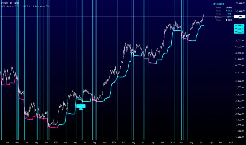 The Quantum Dip Hunter is an advanced technical indicator designed to identify high-probability buying opportunities when price temporarily dips below dynamic support levels. Unlike simple oversold indicators, this system uses a sophisticated quality scoring algorithm to filter out low-quality dips and highlight only the best entry points.