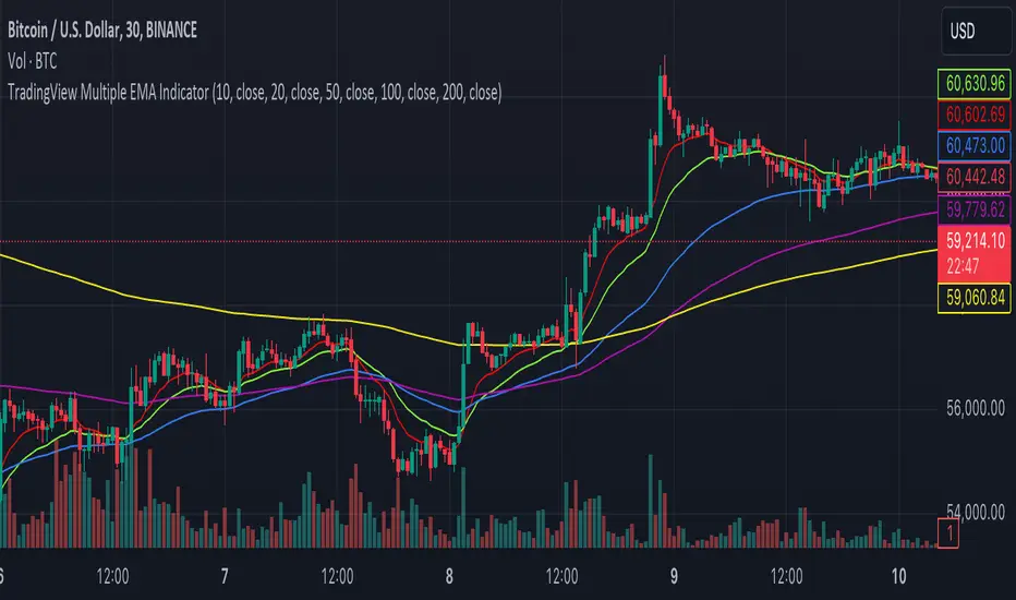 The TradingView Multiple EMA Indicator is a versatile and powerful tool for trend analysis and trade decision-making. By providing a multi-faceted view of market trends, it enables traders to make more informed decisions based on a comprehensive understanding of price action across various timeframes.
