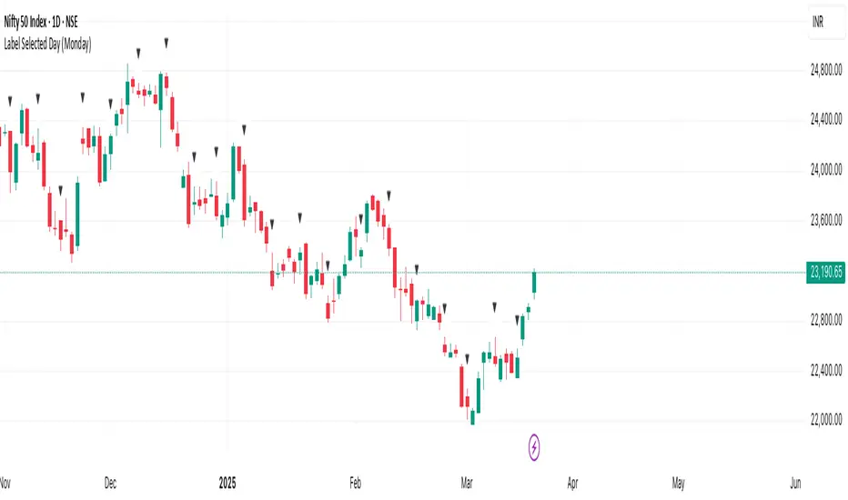 This Pine Script indicator allows users to highlight a specific day of the week on the chart. Users can select a day using the dropdown menu, and the script will mark all occurrences of that day.