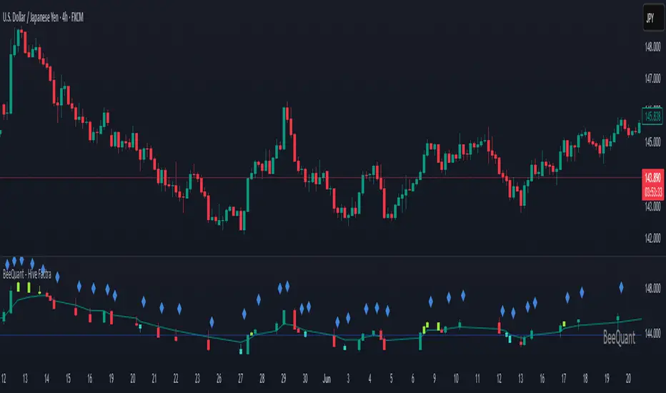 The "Hive Factra" offers an unparalleled, intuitive, and highly adaptable framework for instantly grasping true price momentum and direction through its intelligent reconstruction of market data. By transforming chaotic raw data into strikingly clear, high-conviction "Factra Bars" and dynamic signals, it empowers you to cut through distractions and identify critical market currents with ease. Its revolutionary capability for seamless collaboration with external indicators (like RSI, EMA, etc., by using its purified output as their source) means you can elevate the performance of your entire analytical suite to new levels of precision and clarity. Seamlessly integrate this advanced visual tool within your analytical framework to gain a sharper, more confident perspective, and elevate your strategic decision-making in the markets. It's about seeing the unseen, with enhanced clarity and a deeper understanding of market forces, now with the power to supercharge all your other tools.