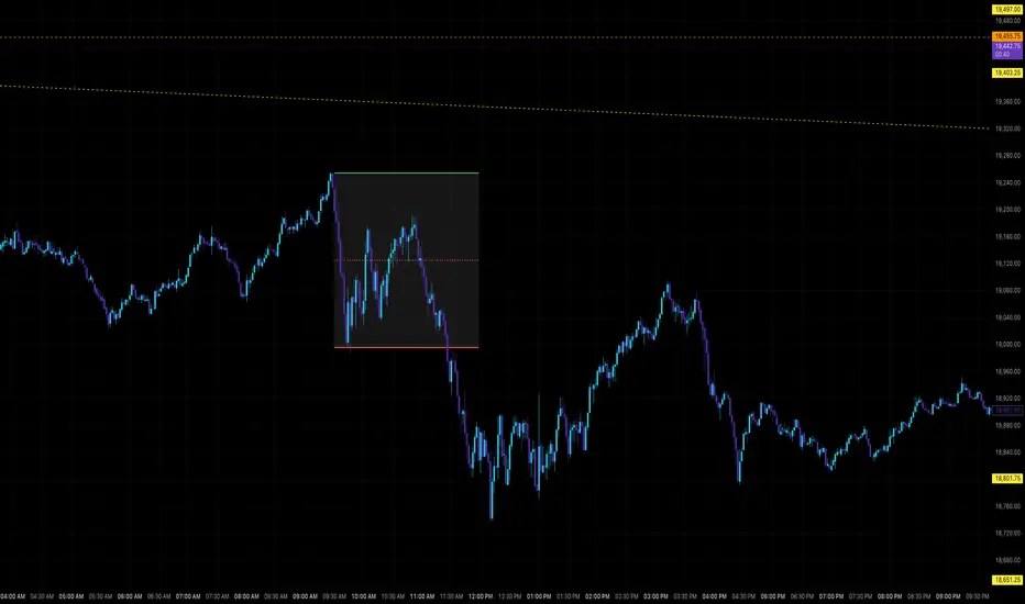 The indicator highlights the high, low, and middle (50%) price levels of a specified session's opening range. These levels can serve as key support and resistance zones for trading strategies. The indicator also offers options to extend these levels beyond the session into later timeframes, making it useful for tracking breakout or trend continuation setups.