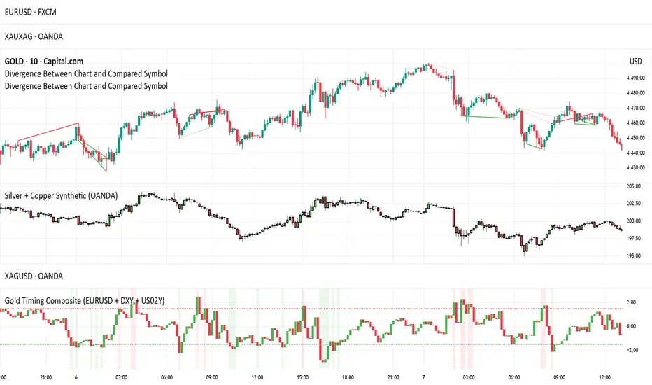 Developed for intraday precious metals traders seeking multi-factor confirmation for gold timing decisions. Built on intermarket analysis principles combining currency dynamics, interest rate differentials, and statistical normalization for robust signal generation. Designed to filter EUR-specific noise and isolate true USD weakness—the primary driver of gold price movements.