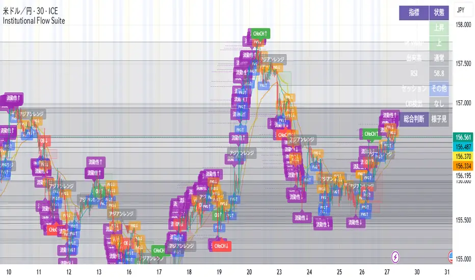Institutional Flow Suite is a professional TradingView indicator designed to visualize institutional trading behavior using market structure, liquidity, and volume-based logic.