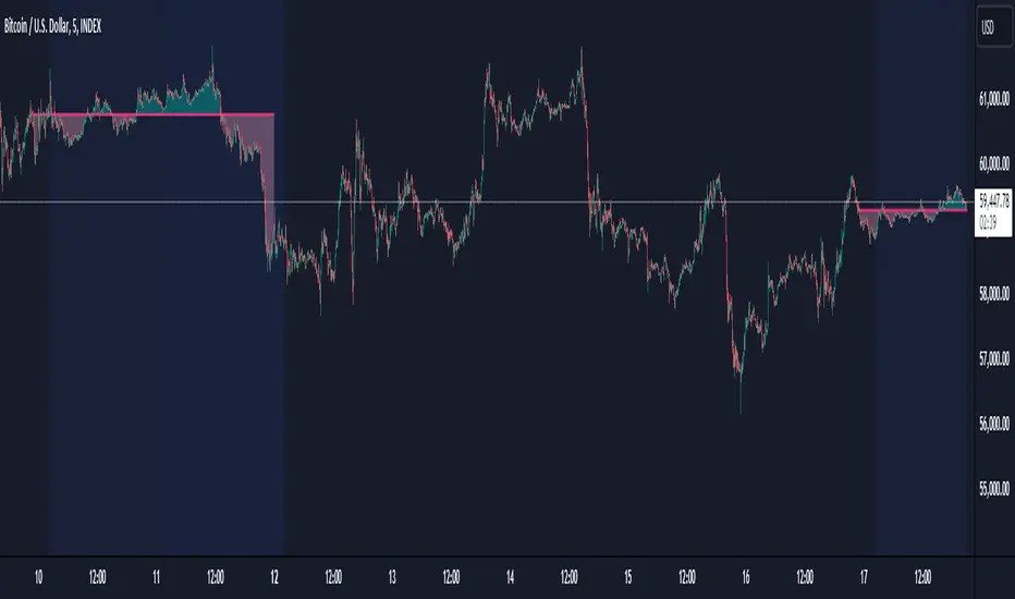 Weekend Backgrounds: The script allows for background highlighting of weekends (Saturday and Sunday) on your chart. This can be enabled or disabled and customized with specific colors.