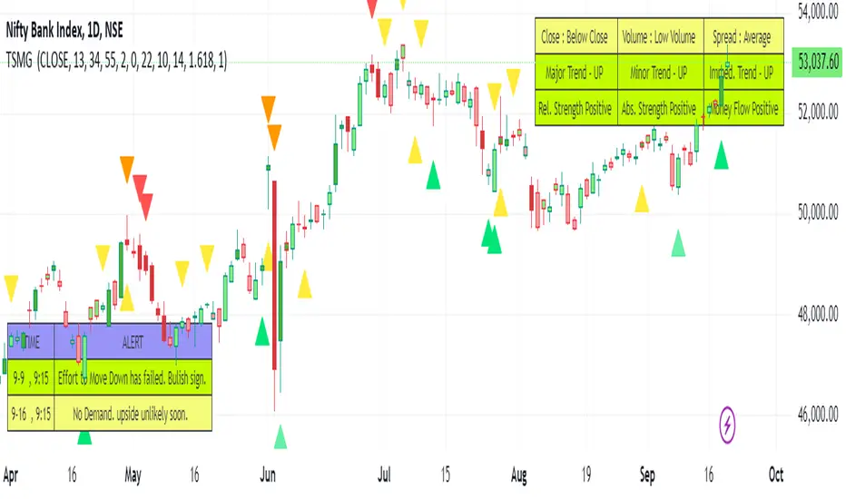 The TSMG Volume Indicator is a powerful tool used in Volume Spread Analysis (VSA) to assess market dynamics by examining the relationship between price movements and trading volume. It helps traders identify potential actions of "smart money"—institutional or informed traders—by analyzing volume spikes, price spreads, and closing prices.