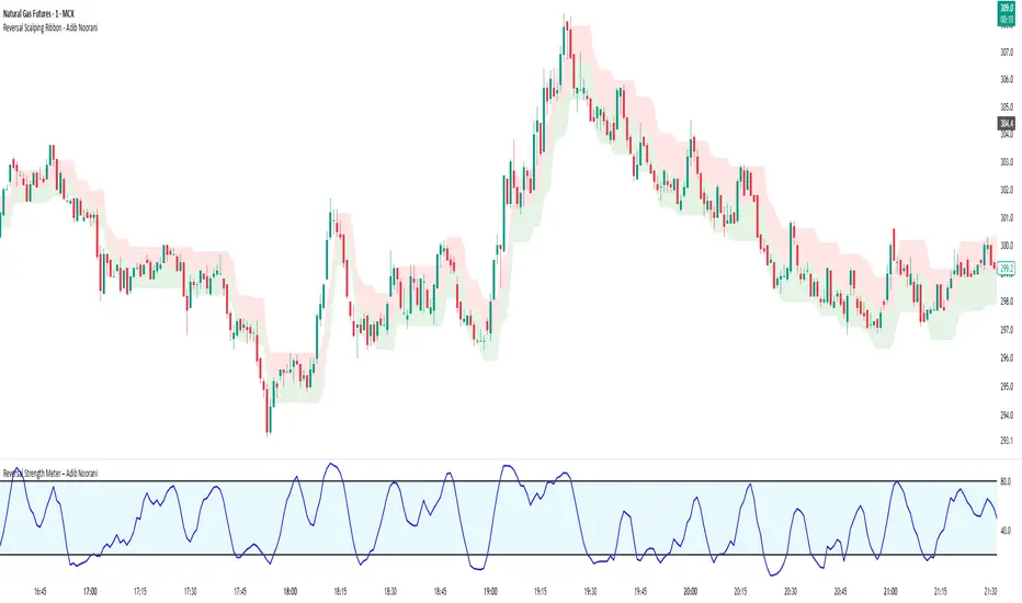 The Reversal Strength Meter is an oscillator designed to identify potential reversal zones based on supply and demand dynamics. It uses smoothed stochastic logic to reduce noise and highlight areas where momentum may be weakening, signaling possible market turning points.