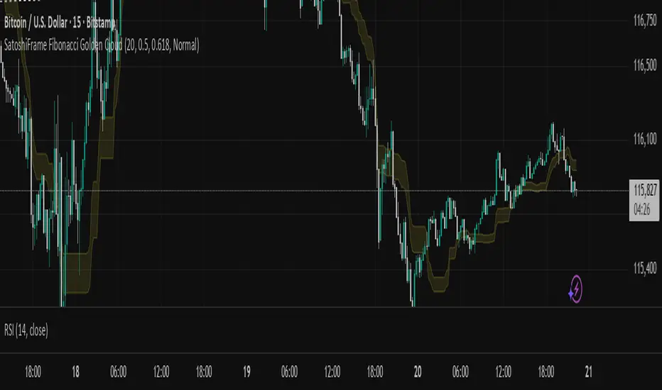 This indicator highlights key support and resistance zones using Fibonacci levels, visualized as golden clouds on the chart. Adjustable colors, transparency, and period make it perfect for professional technical analysis.