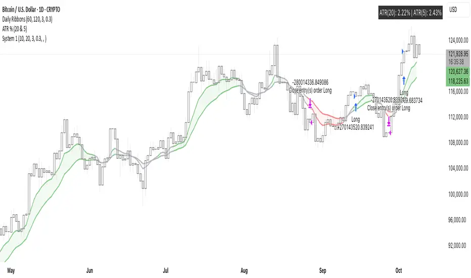 System 1 is a simple yet powerful EMA-based strategy designed to capture early trend flips using volatility-adjusted signals. It works best on trending markets and aims to get you positioned early in the move while avoiding chop when the market is neutral.