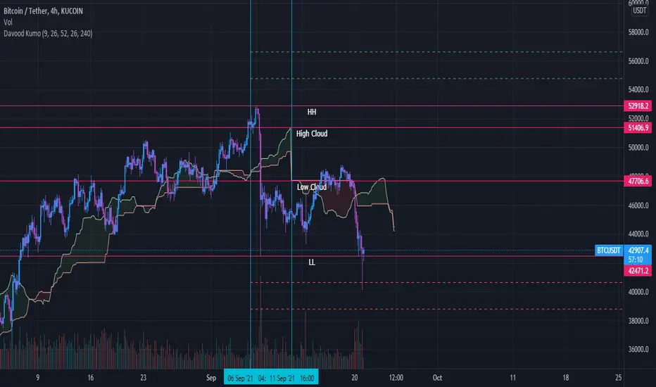 Select the interval at which the kumo clouds change phase and depending on what time frame we are in, we give the time inputs to the indicator.