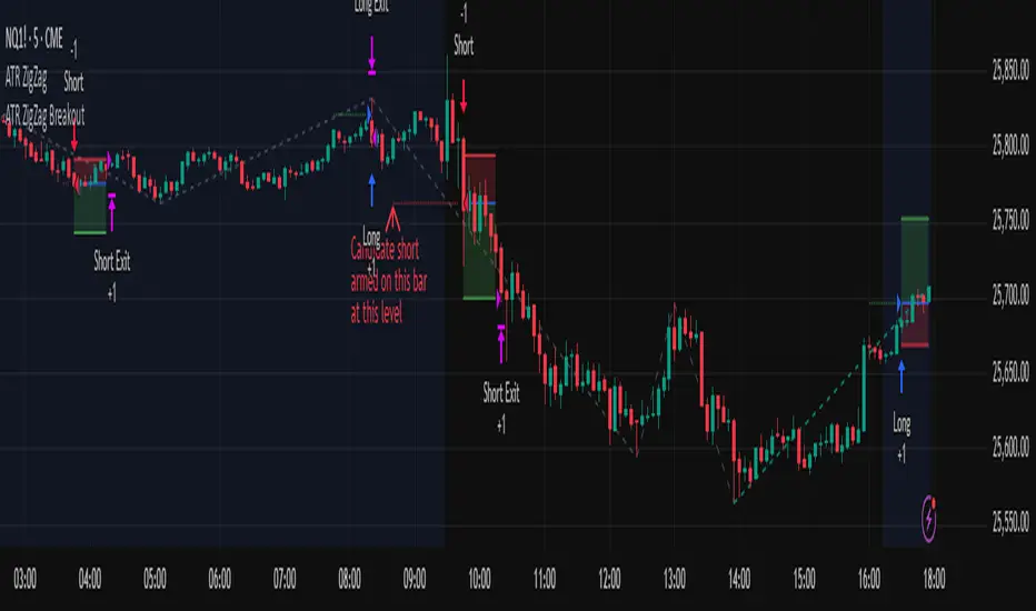 This strategy uses my ATR ZigZag indicator (powered by the ZigZagCore library) to scalp breakouts at volatility-filtered highs and lows.